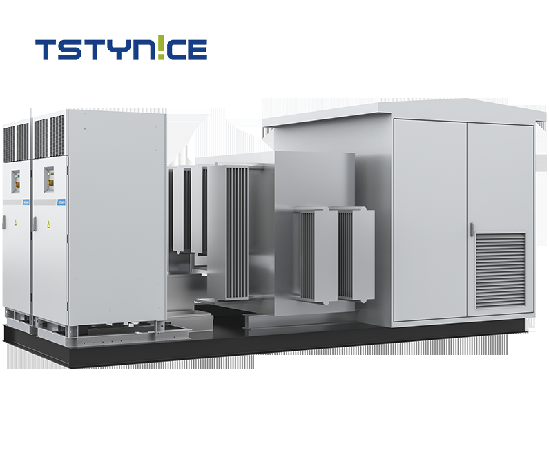 The TSTY energy storage converter and step‑up integrated unit is a factory‑prefabricated, compact substation designed specifically for battery energy storage systems (BESS). It integrates a bidirectional power conversion system (PCS), a step‑up transformer (dry‑type or oil‑immersed), high‑voltage switchgear, low‑voltage distribution, communication and auxiliary power, and a protective enclosure into a single, fully tested assembly. Available in European, American, and Huashi (Chinese) configurations, this unit efficiently stores green energy from solar or wind power and, when required, converts DC battery power into grid‑compliant AC and steps it up to medium voltage (10kV or 35kV) for stable transmission to the grid. It effectively mitigates the intermittent and volatile nature of renewable energy generation, improving energy efficiency and grid stability.